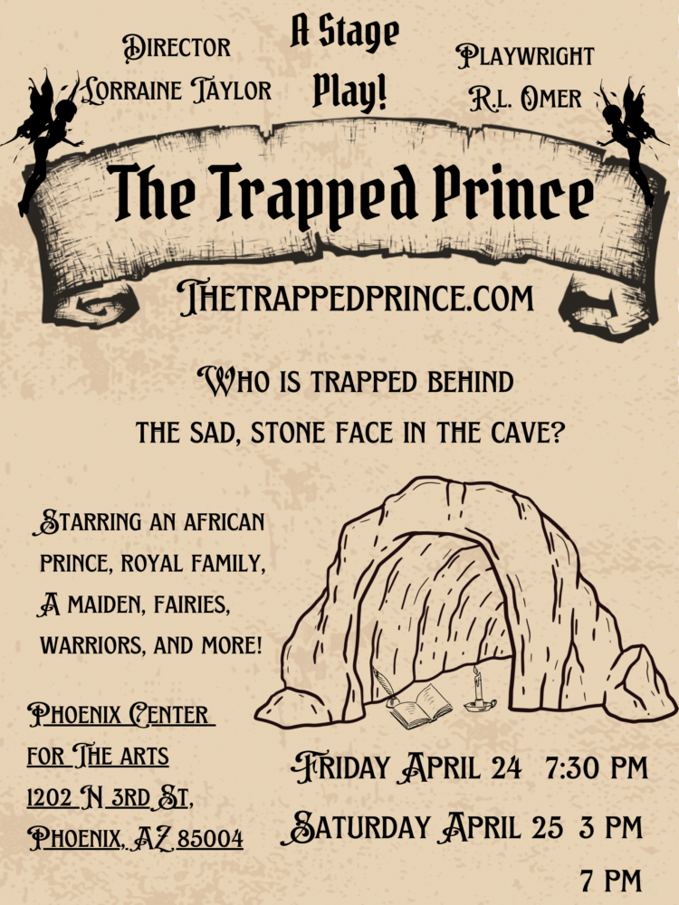 The Trapped Prince is a stage play in the tradition of classic fairy tales and is fun for the entire family! When a prince from a lush African kingdom of long ago helps a stranger, a cruel twist of fate finds him trapped in a cave in faraway land- America!
